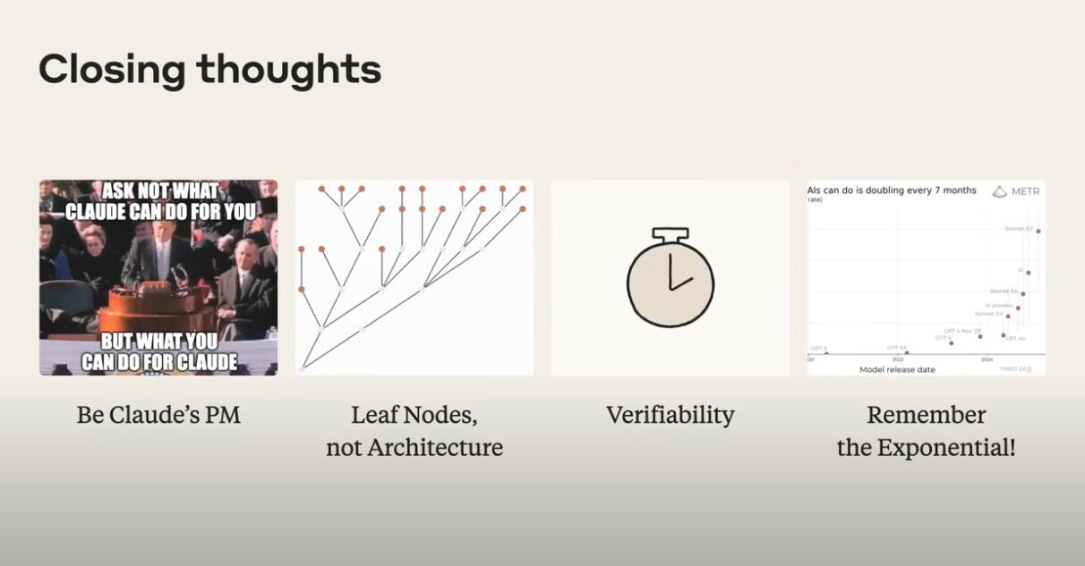 (4) Prepare for the exponential - AI can handle ~1-hour tasks today, but that capability doubles every 7 months. Next year, it'll tackle day-long projects, then week-long ones. If you insist on reviewing every line of code, you'll become the bottleneck.